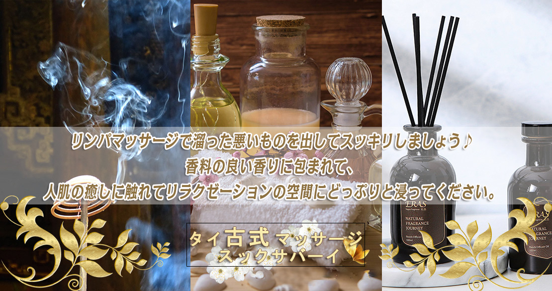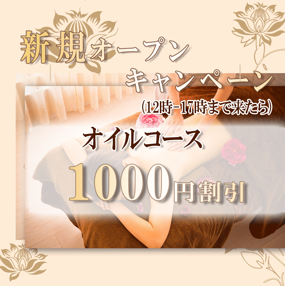 当店では、アロマオイルの効能と当店自慢のセラピストによるリンパマッサージの相乗効果による、癒しのひとときをお客様お一人お一人にお届けしております、自然で心やすらぐ優美な香りを、施術中はもちろんご帰宅お休みになってから翌日朝目覚めでまで楽しんで頂けます、どうぞゆっくりご堪能ください。